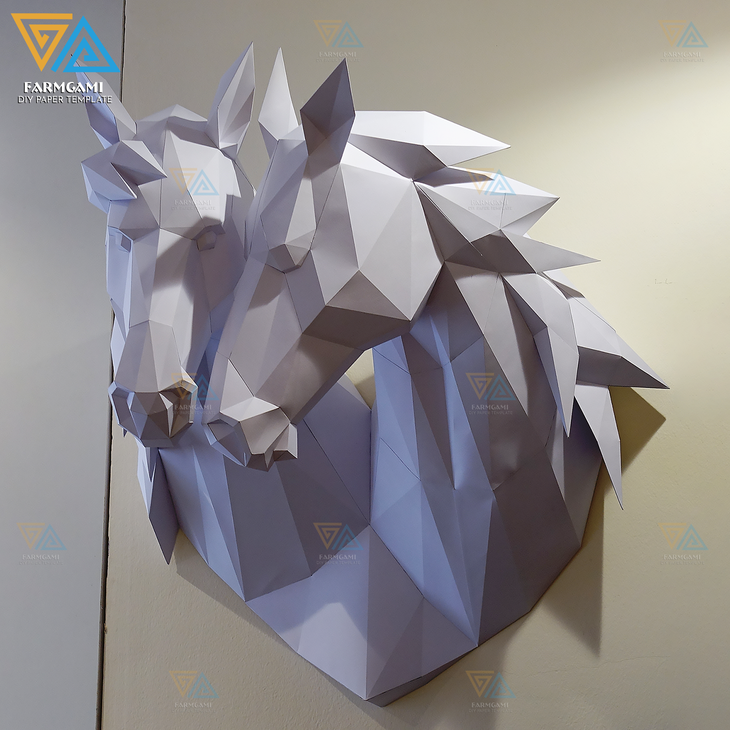 DIY Paper Template to build Paper Couple Horse model for deco your wall, Paper craft template