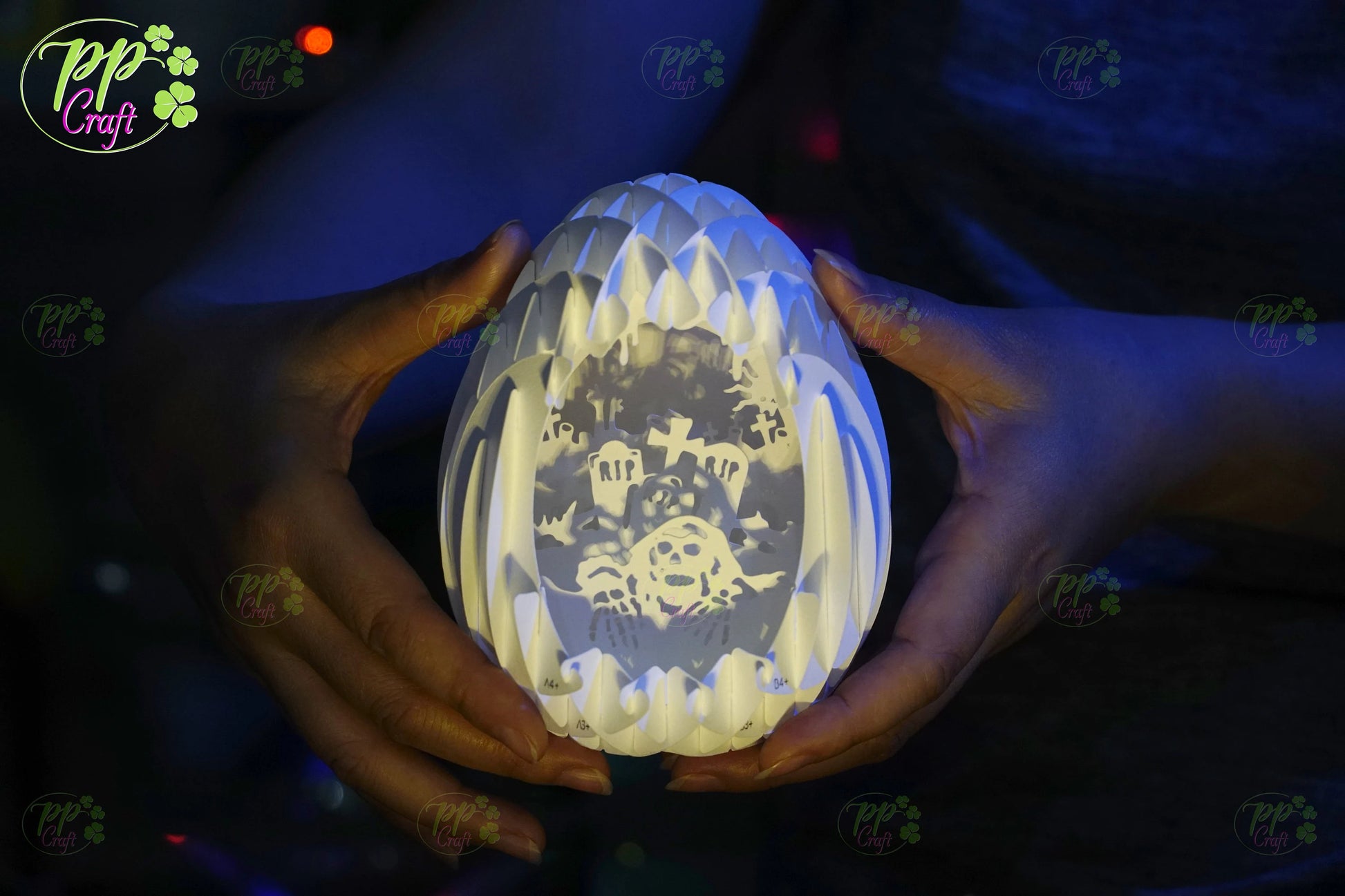 Mini Egg Shadow light Pop Up with Cemetery partten SVG for Cricut Machine, Halloween gift Template - Egg Lightbox, DIY Paper Lanterns