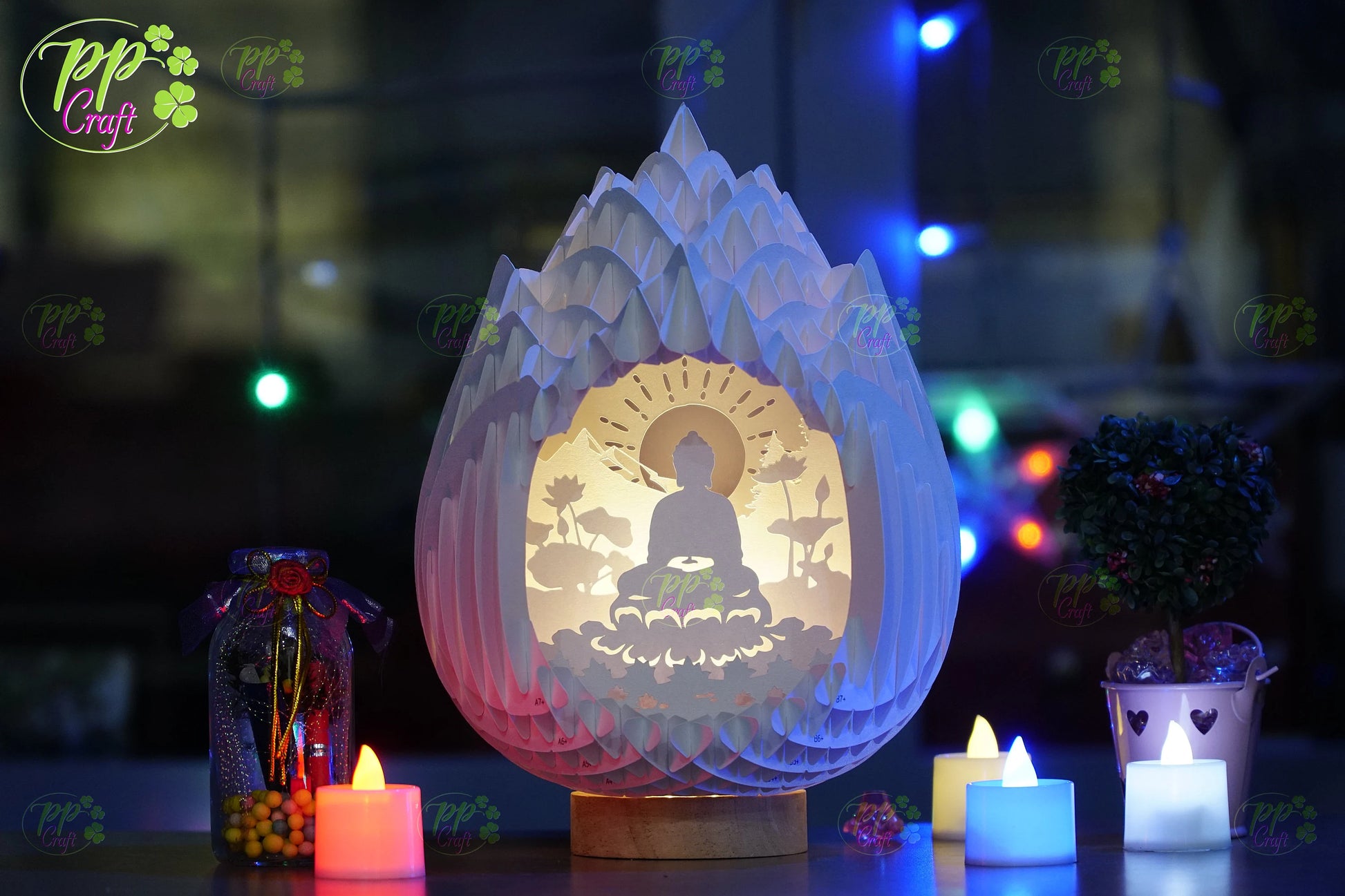 The Buddha meditating in Lotus Pop Up Light Box SVG Template, Egg SVG for Cricut Machine, arts gift Template - Egg Lightbox, DIY Paper